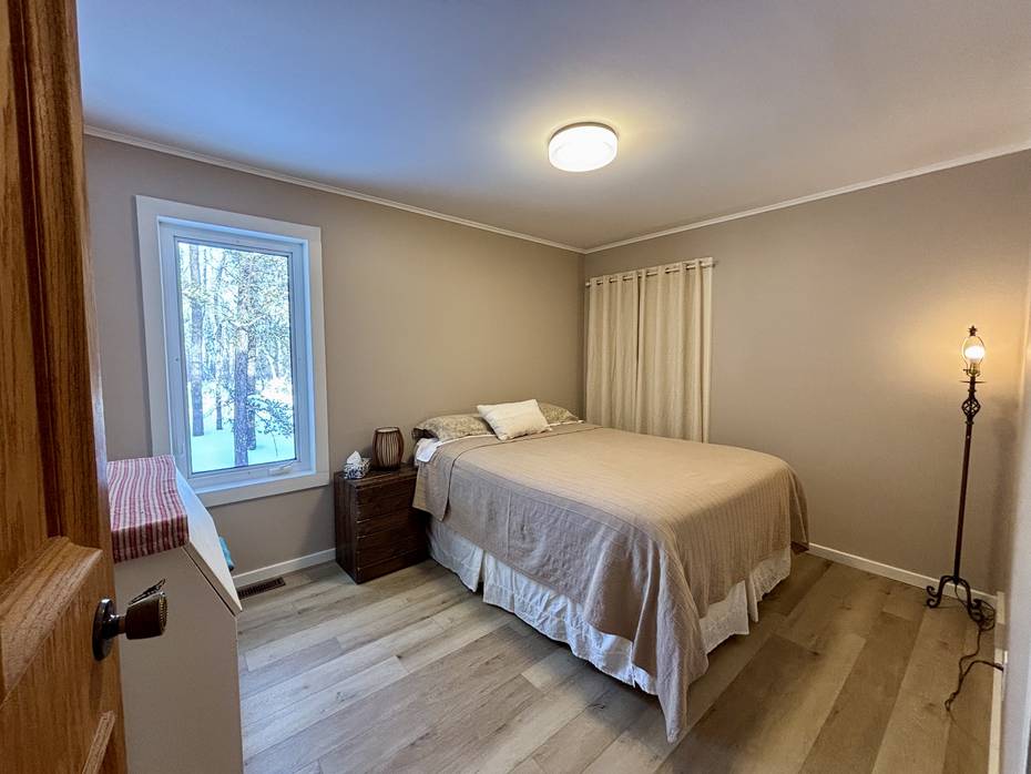 Exceptional YR - 3 BR, 2 full bath, solidly built home/cottage. Nicely situated on a 2.81 acre private park like setting in the pines! This home has been lovingly maintained by its original owners, and is ready for a new family to embrace. Large sunken living room with newer wood stove to cozy up to on those cooler days & forced air heat and central air for all of life's comforts. Tri-pane windows throughout, HWT (25), 200 amp panel, and updated flooring & paint in BR's. Spacious primary BR is sure to impress with a brand new 3 pc ensuite & walk-in closet. Step outside onto the "L shaped" wrapped deck, and enjoy the screened in gazebos away from those pesky MB mosquitos day or night. Brand new metal roof on the large 28 x 32 garage includes a separate heated and insulated shop, also a 16x28 ft lean-to for added storage. There's room for all the toys! The backyard has a fenced in garden and a 12x12 storage/garden shed. Traverse bay offers an abundance of beauty & nature, enjoy stargazing or taking in the northern lights! Close to many nearby amenities including - golf, excellent walking/hiking trails, sandy beaches, parks, stores, snowmobile/quad trails, boat launches, restaurants and more! Call today!